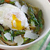 Asparagus and Poached Eggs over Pasta