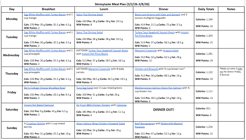Free 7 Day Healthy Meal Plan (March 2-8)